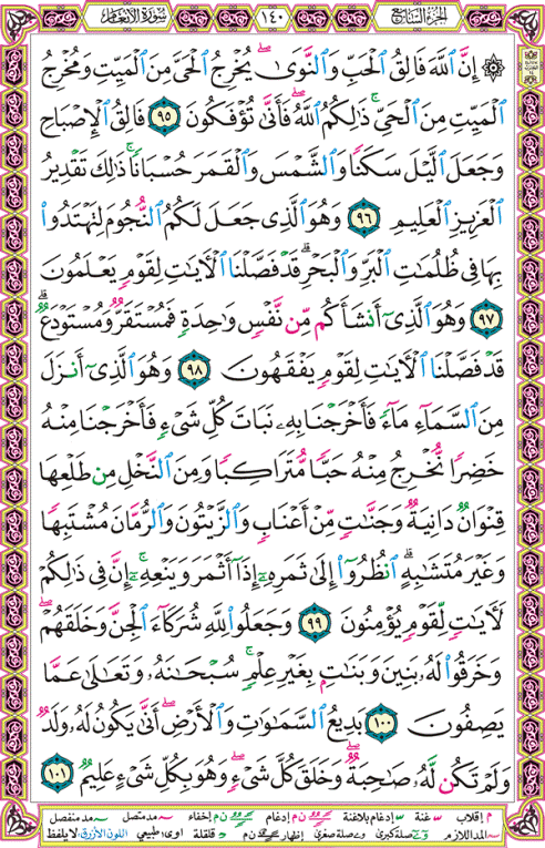 96–فَالِقُ الإِصْبَاحِ وَجَعَلَ اللَّيْلَ سَكَناً وَالشَّمْسَ وَالْقَمَرَ حُسْبَاناً ذَلِكَ تَقْدِيرُ الْعَزِيزِ الْعَلِيمِ